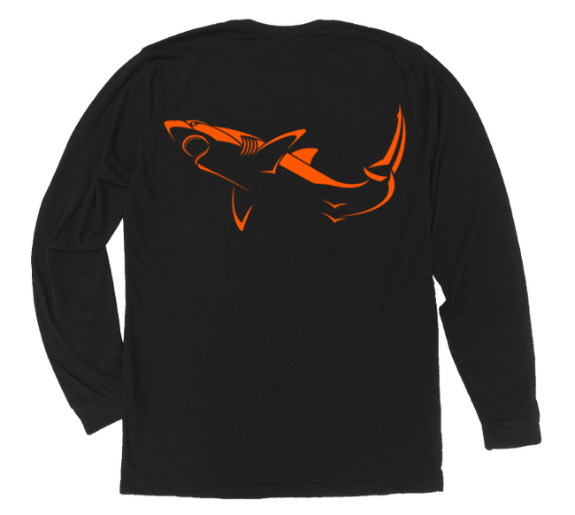 Great White Shark Long Sleeve T-Shirt [Back - BL / OR]