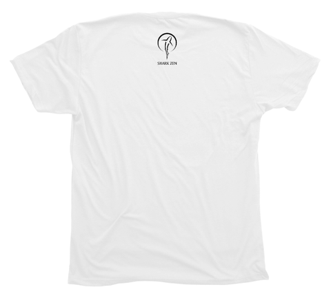 - Main design on front, subtle vertical Shark Zen logo on back just below neck.