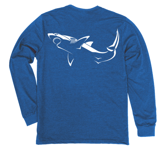 We thoroughly reviewed many types of materials for the short sleeve t-shirts that would display Shark Zen designs. We ultimately chose a perfect blend of cotton and polyester with a premium finish. We were hesitant to include polyester given the stigma around the material being hot and unforgiving. However, this particular blend, along with its quality manufacturing, makes up a product that beats just about any other t-shirt out there on all fronts.